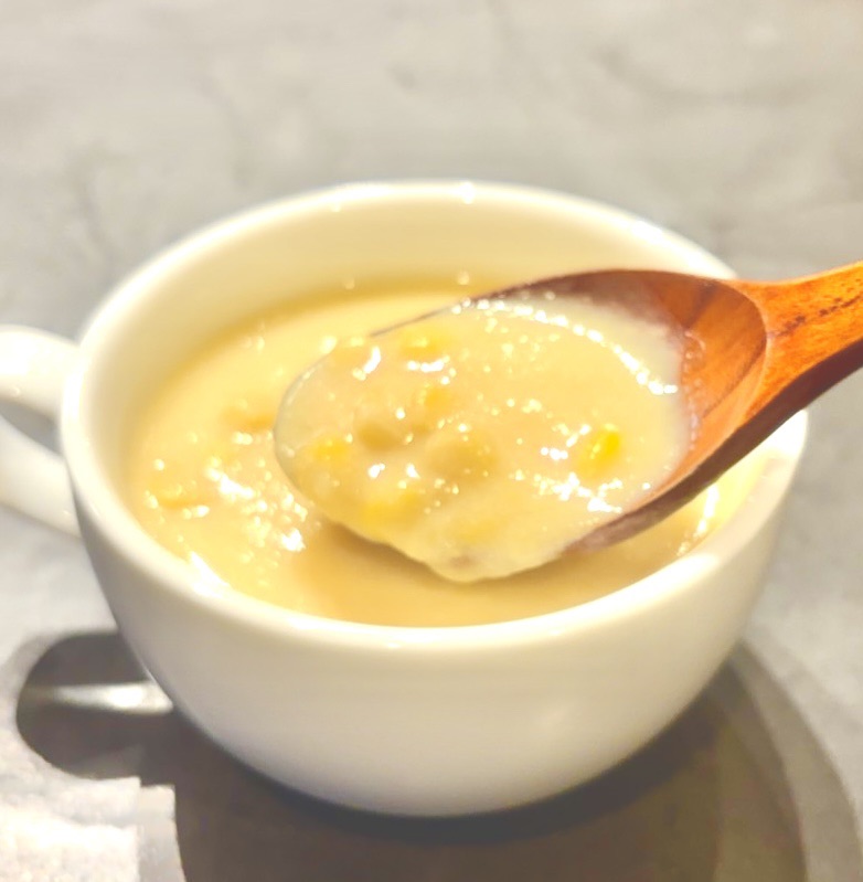 まめぼう豆では豆乳仕立てのコーンスープを冬季限定でご用意しております。濃厚な豆乳を使ったやさしい味わいのコーンスープでほっと温まってください。